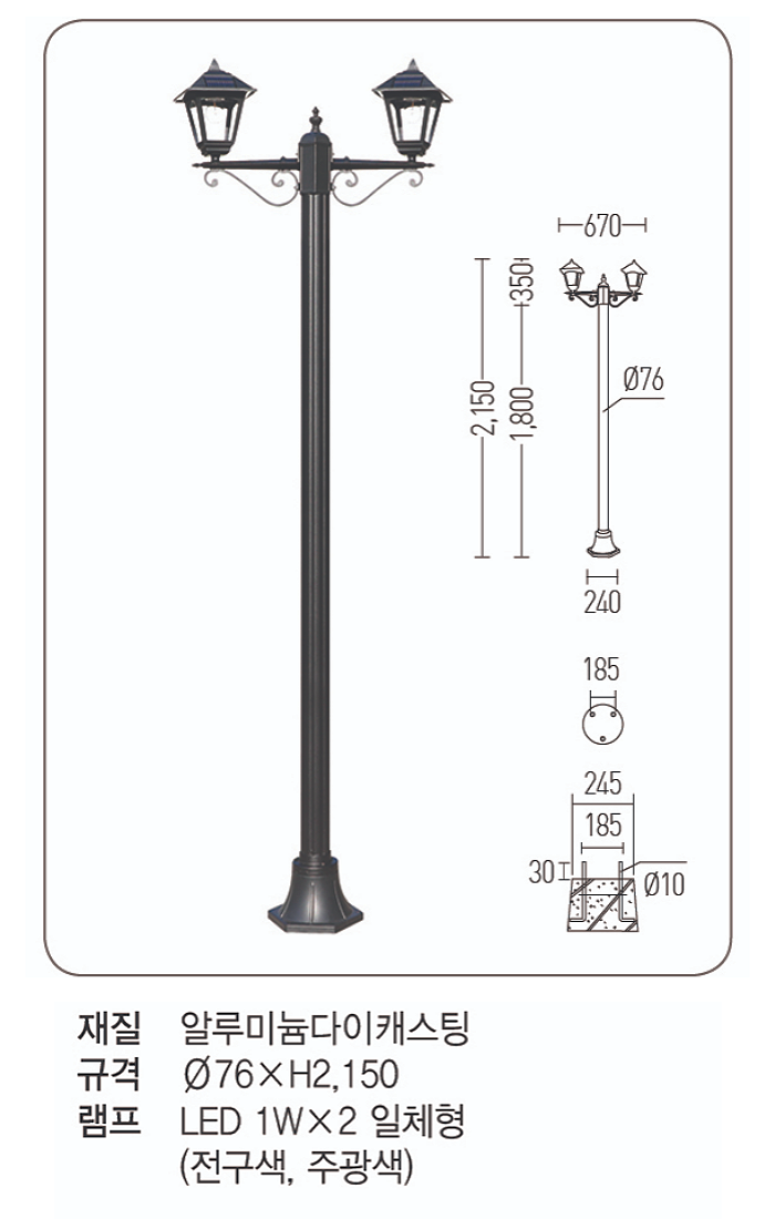 LED 태양광 리종 정원등 2등