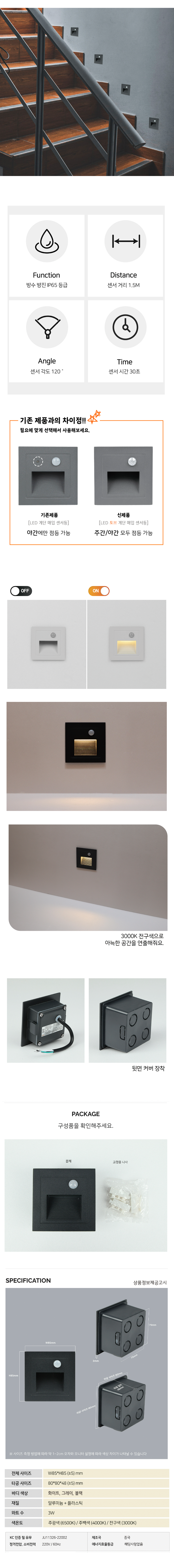 LED 3W 토브 계단 센서 매입등 (3 color)