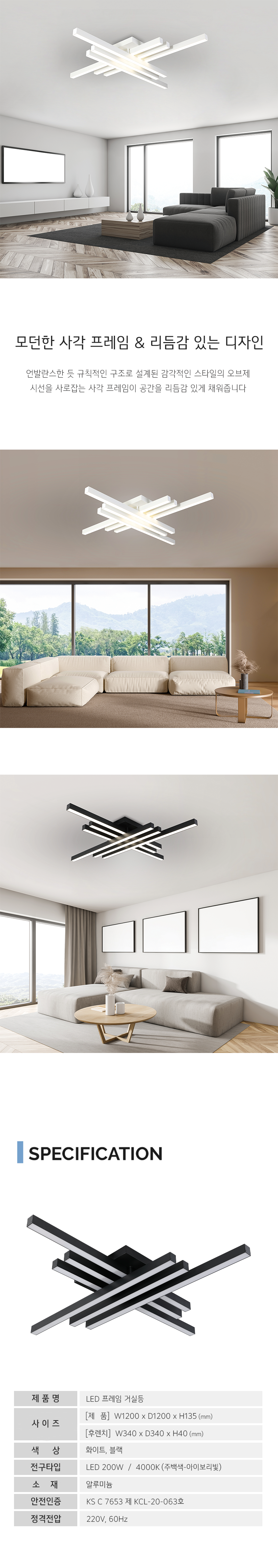 LED 200W 프레임 거실등 (2 color)
