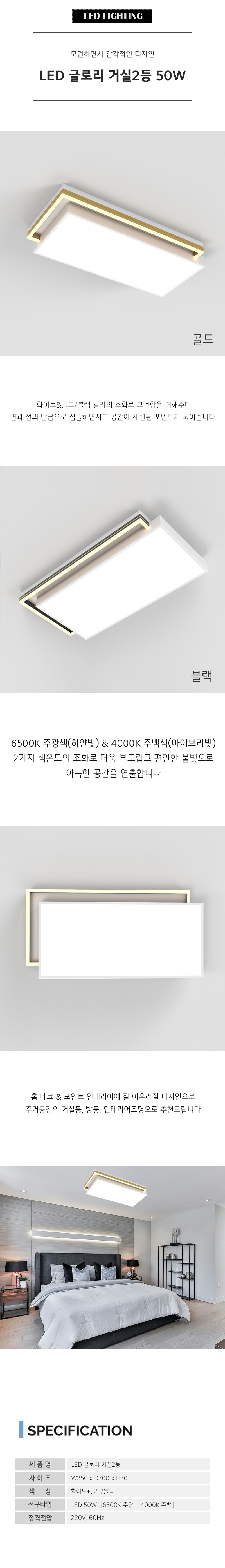 LED 글로리 거실2등/방등 50W