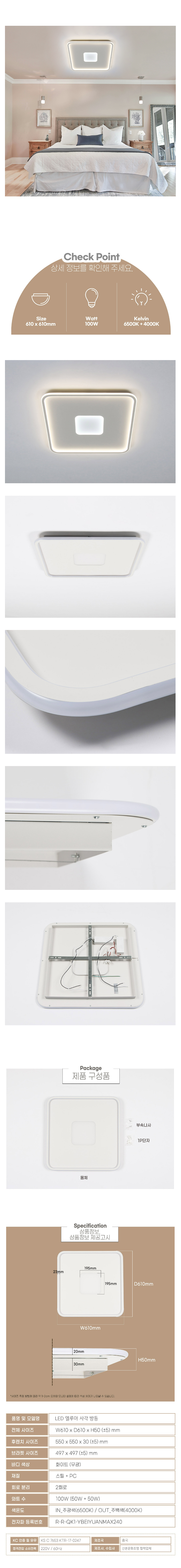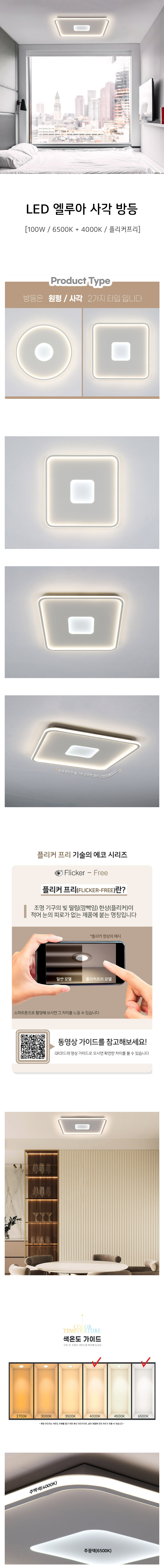 LED 엘루아 사각 방등 100W