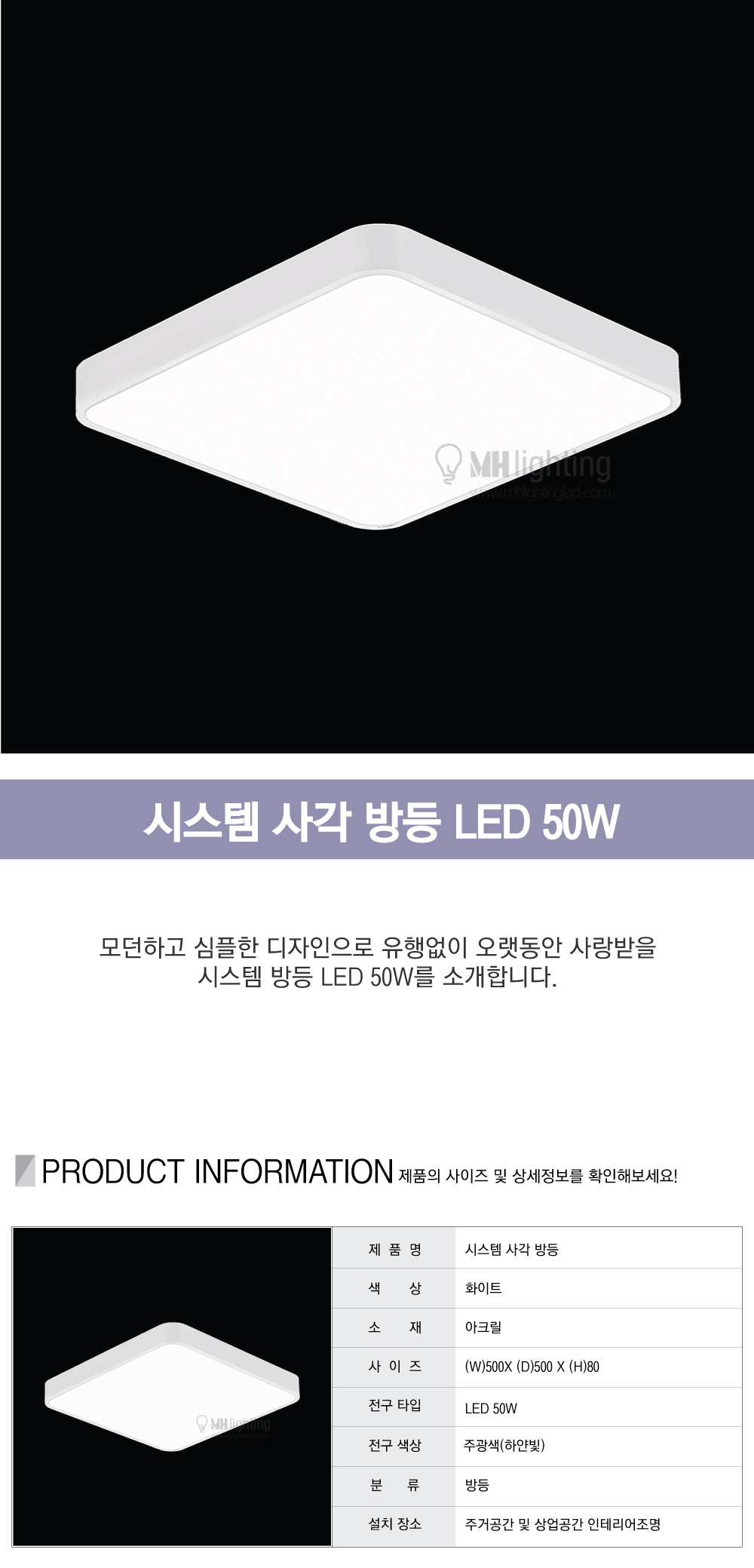 시스템 화이트 사각 방등 LED 50W [2년 A/S]