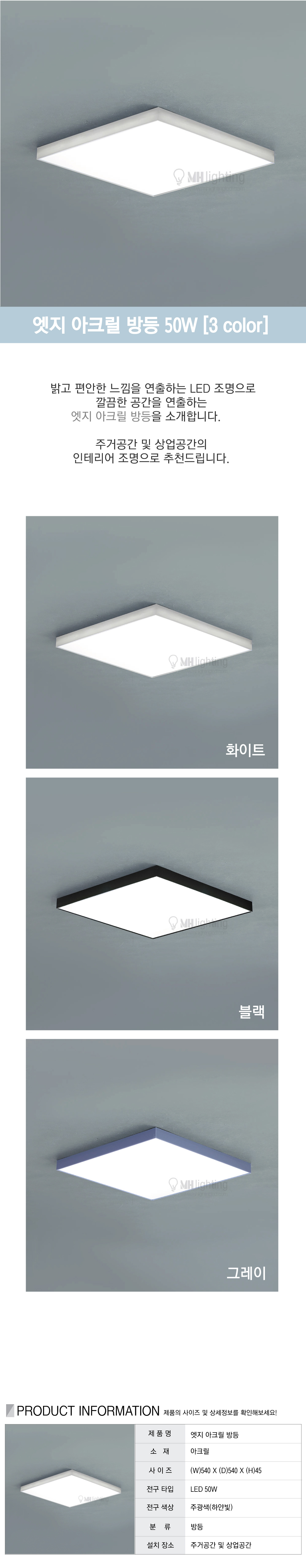 LED 엣지 아크릴 방등 50W (3 color)