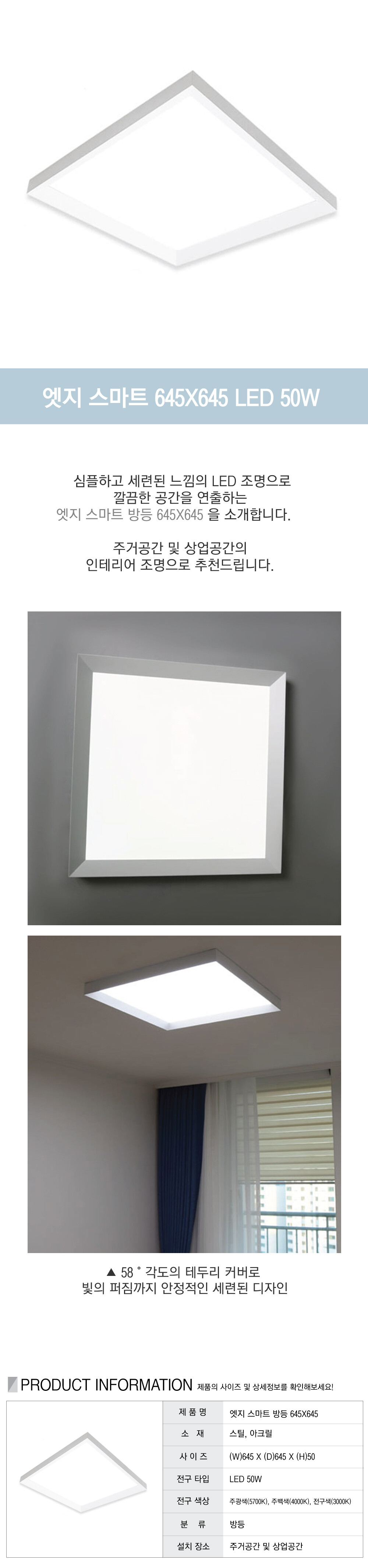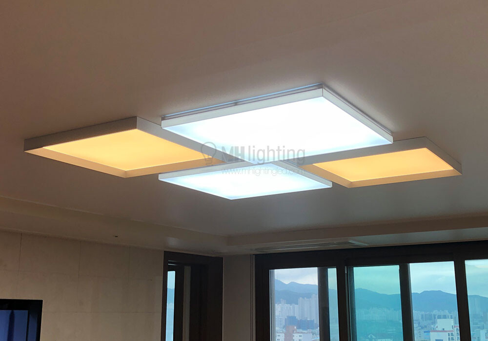 ▼ [엣지 스마트 645X645 전구색]과 [엣지 아크릴 700 주광색]을 혼합하여 거실등으로 설치한 모습