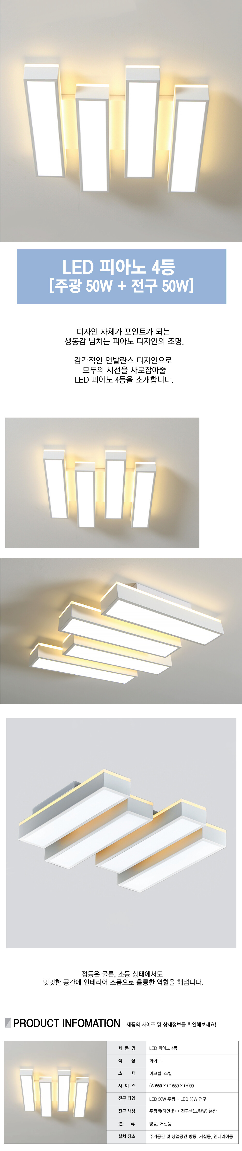 LED 100W 화이트 건반 4등 [주광 50W + 전구 50W]