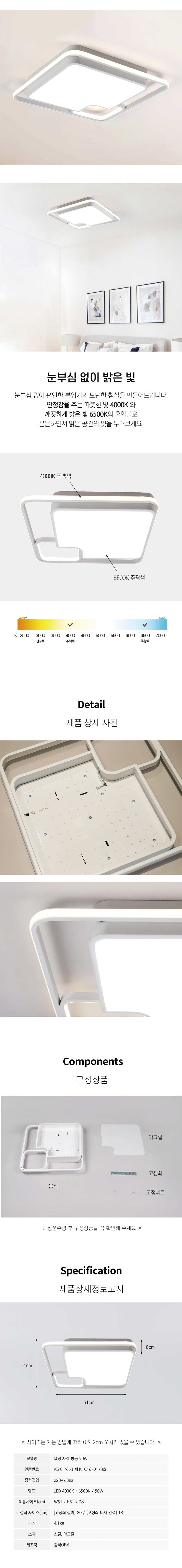 LED 달링 사각 방등 50W