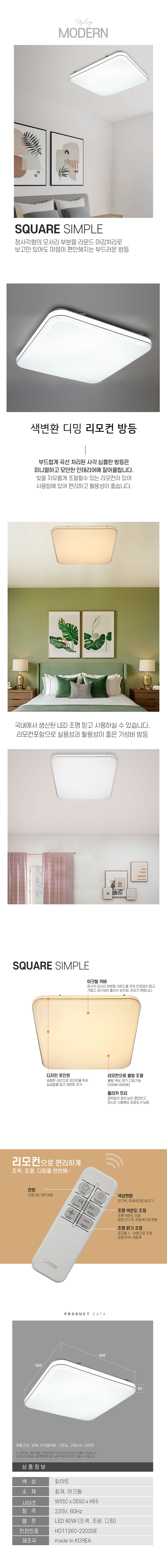 색변환 디밍 리모컨 방등 LED 60W (사각)