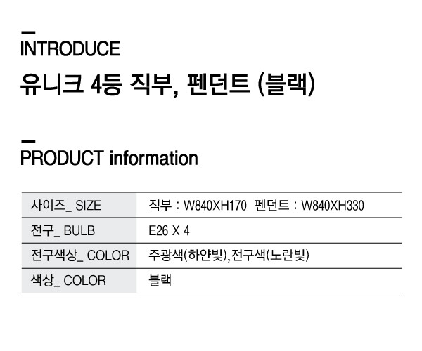 유니크 4등 블랙 [직부, 펜던트] <<특가>>