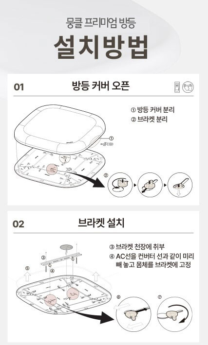 천장에 완전히 밀착되는 심플한 디자인으로 모던한 인테리어에 잘 어울리는, 뭉클 프리미엄 방등!