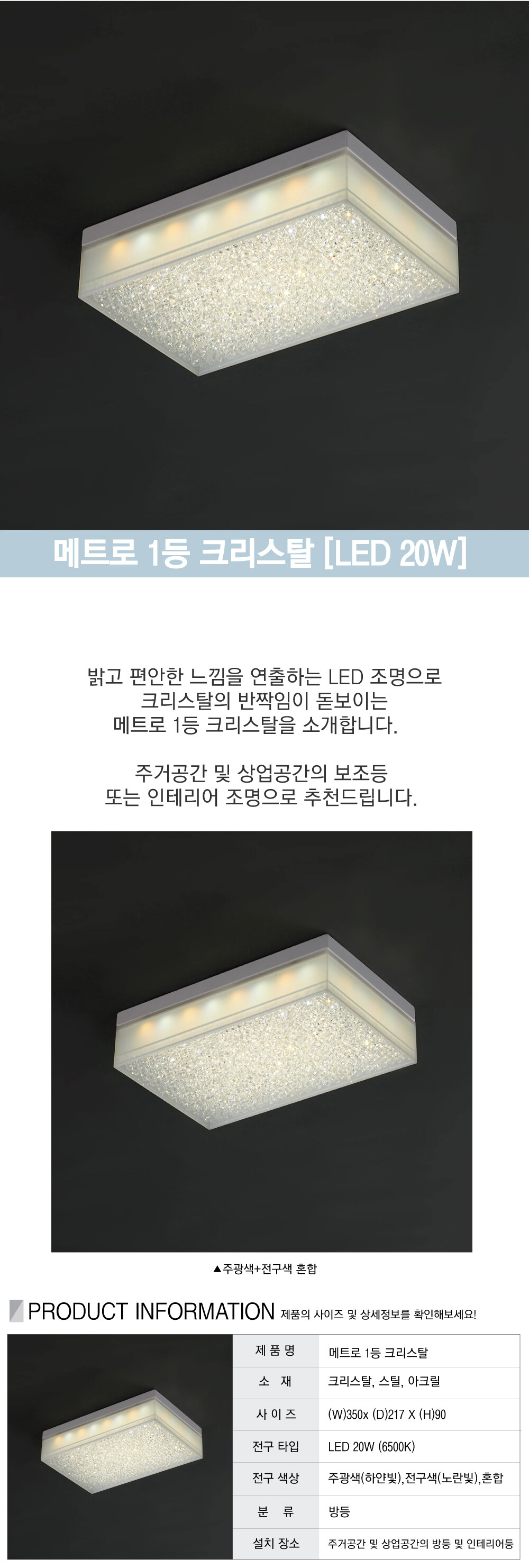 메트로 1등 크리스탈 LED 20W