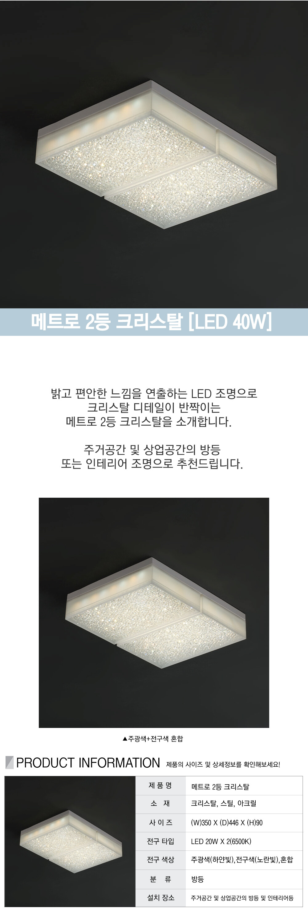 메트로 2등 크리스탈 LED 40W
