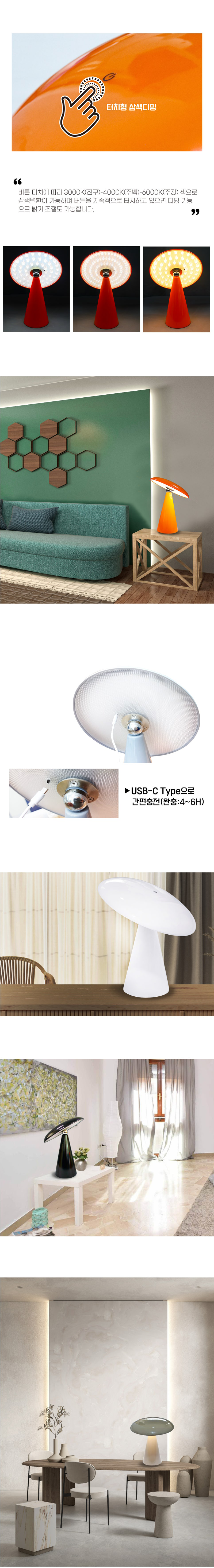 회전 기능 / 터치형 3색디밍 / 충전식 USB (C타입) / 자석 체결