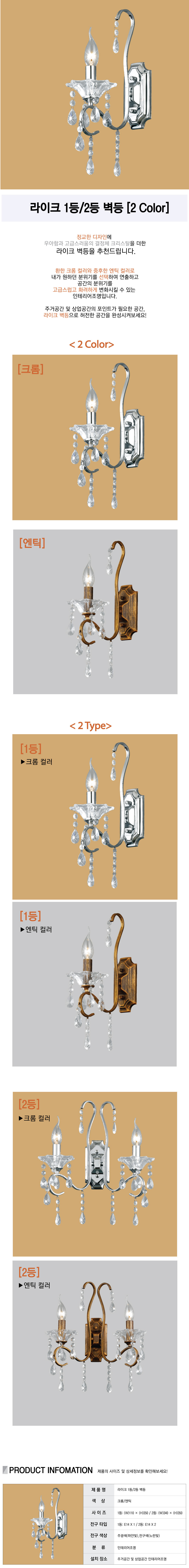 라이크 1등/2등 벽등 [2 Color]