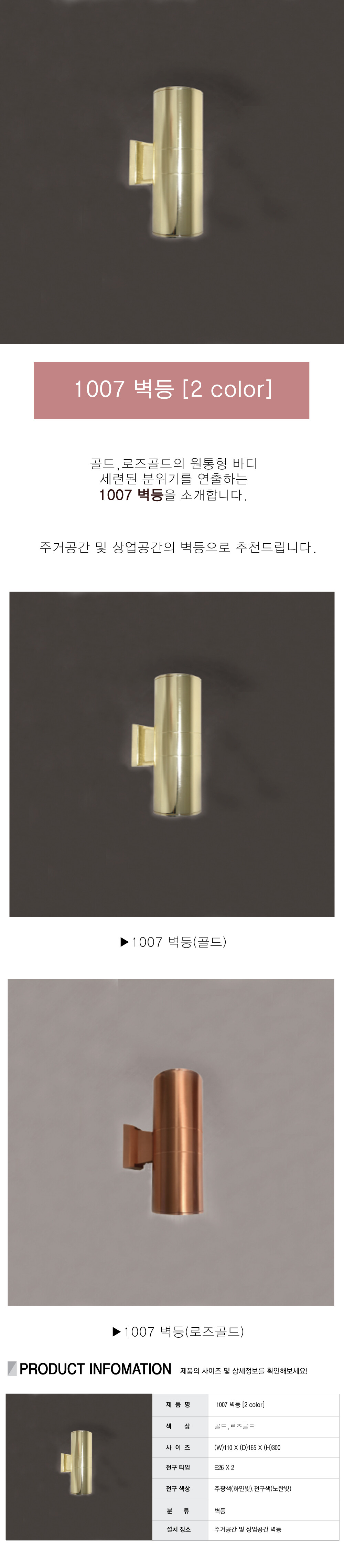 1007 원통 2등 벽등 [2 color] [채널A '거짓말의 거짓말' 협찬조명]