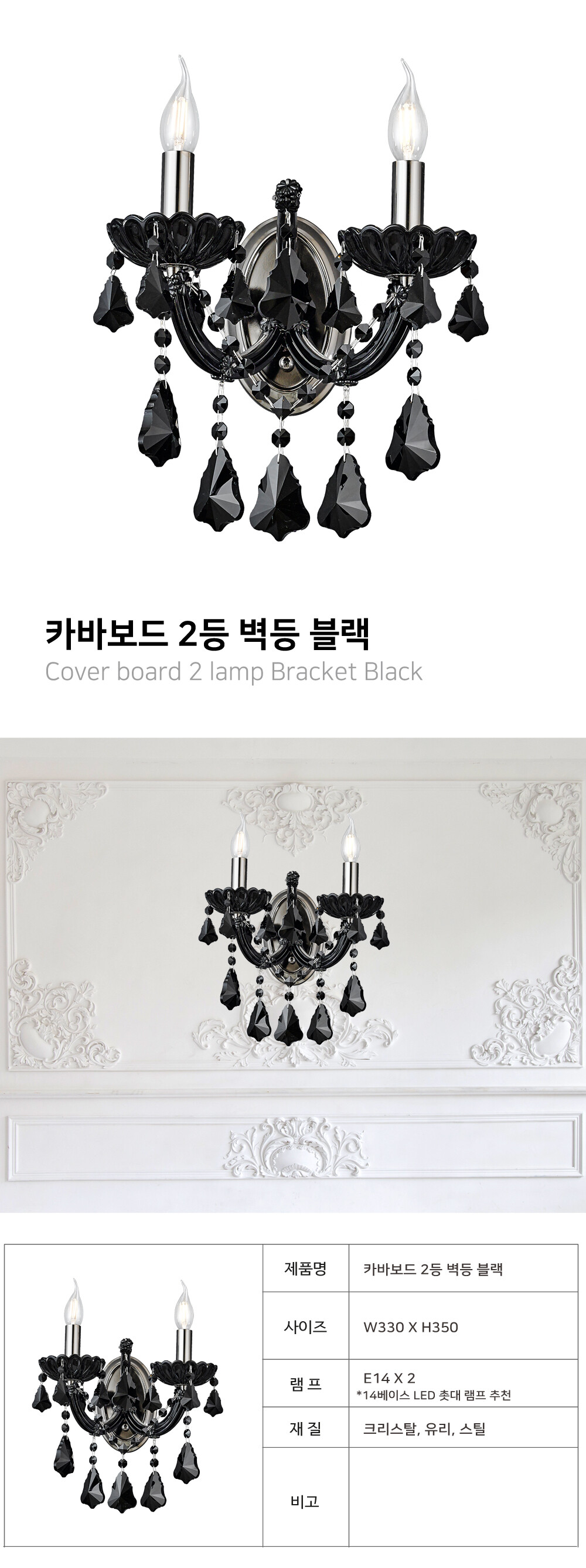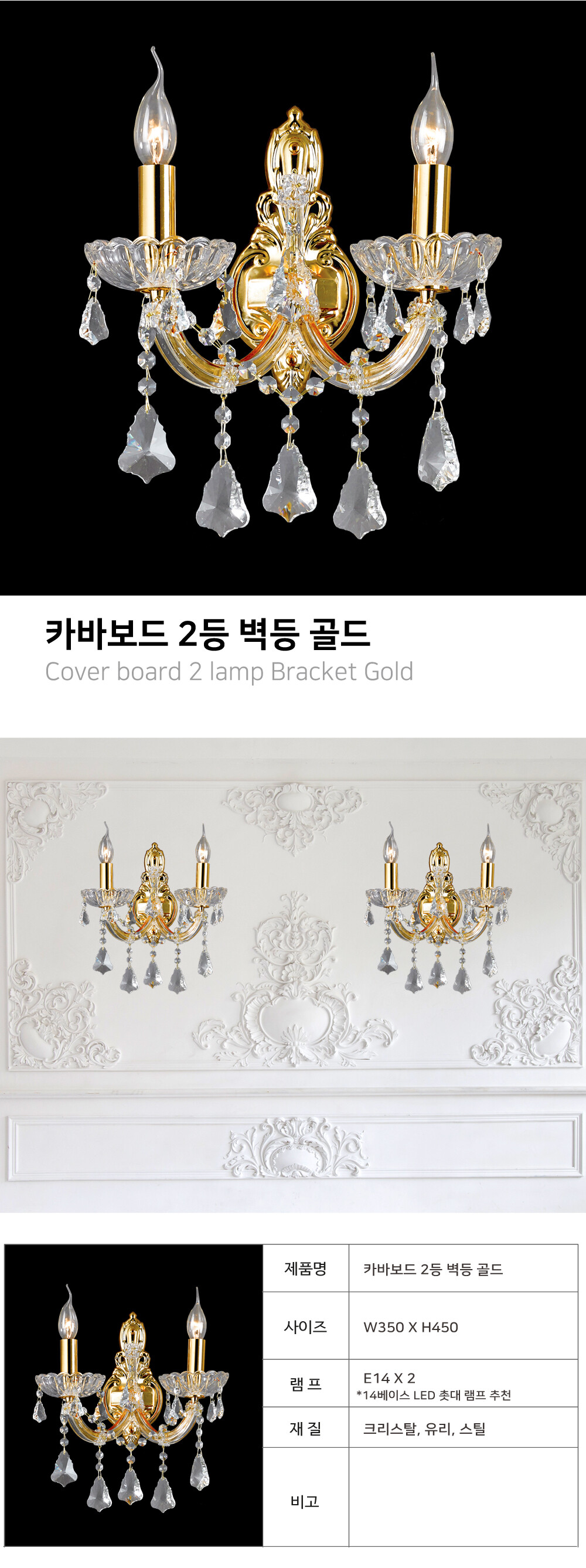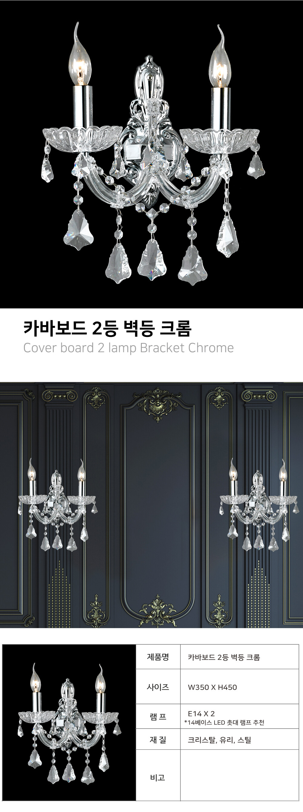 카바보드 2등 벽등 [크롬/골드/블랙]
