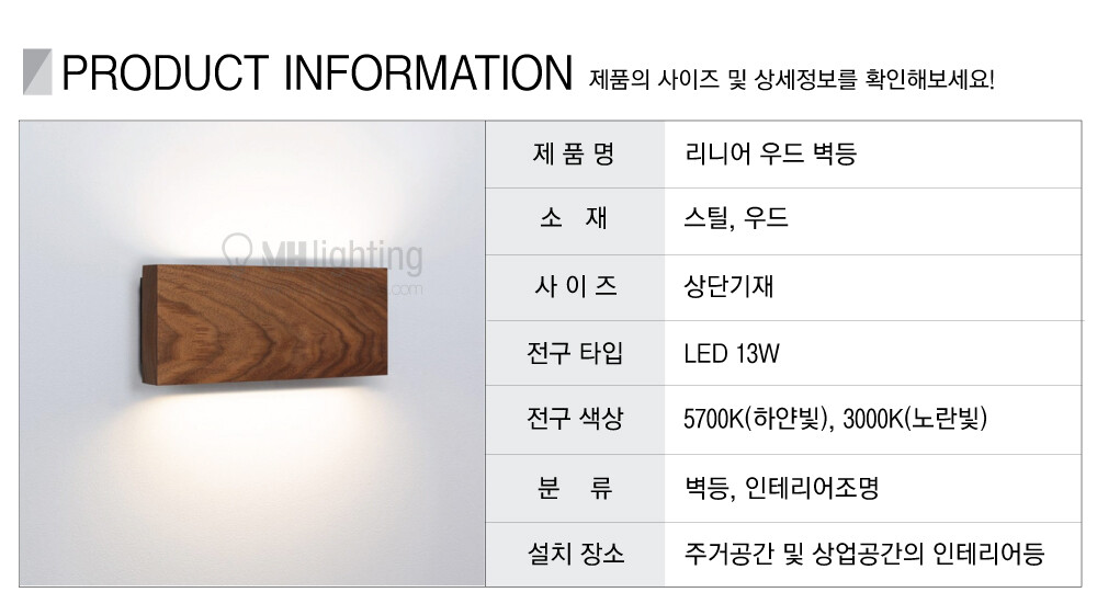 리니어 우드 벽등 LED 13W (월넛)