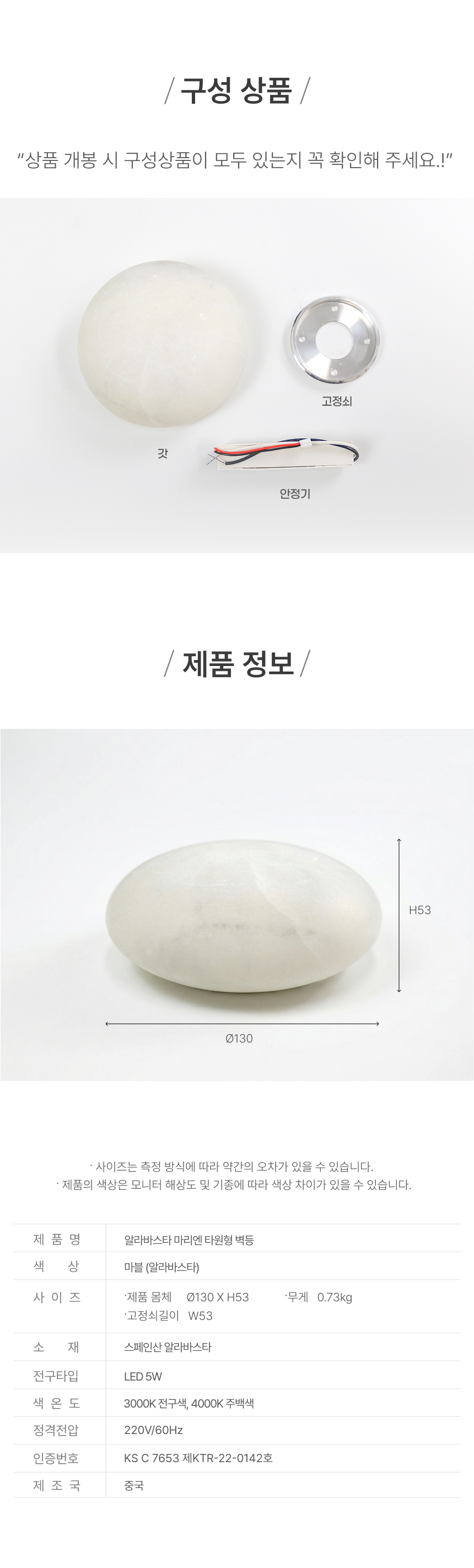 알라바스타 마리엔 타원형 벽등 LED 5W