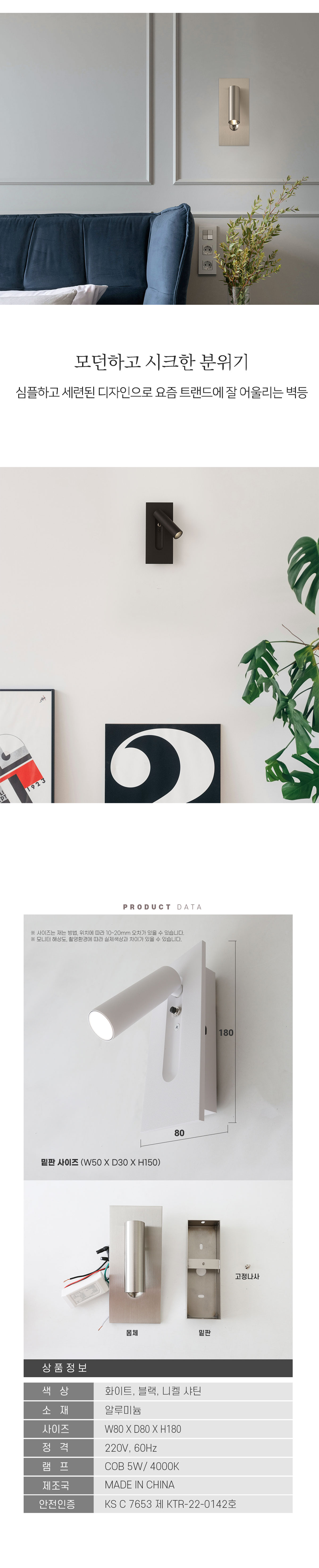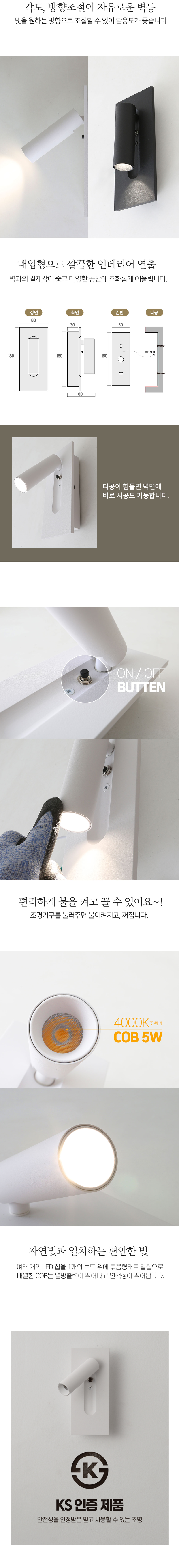 LED 픽스 COB 벽등 (3 color) 직사각