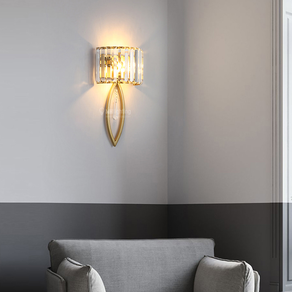 불순물 없는 투명 크리스탈에서 나오는 은은한 불빛. 고급스러운 골드 컬러와 모던하고 감각적인 인테리어 조명으로 시선을 사로잡는 브로치 2등 벽등.
