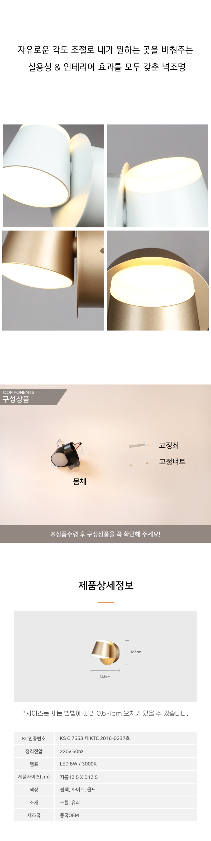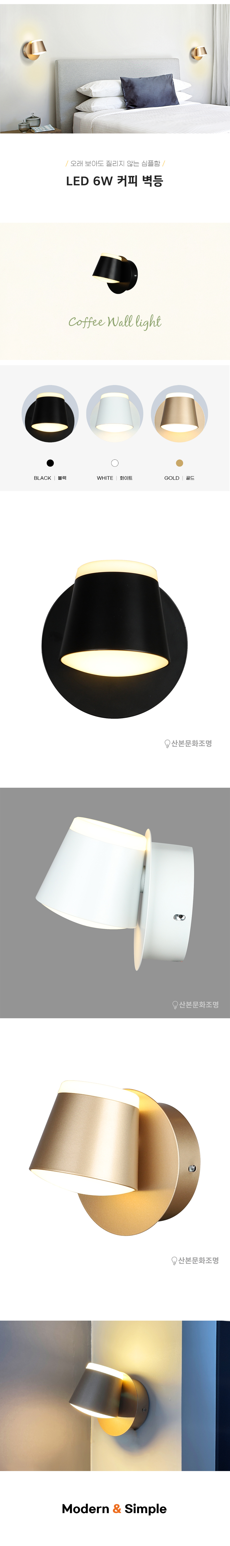 LED 6W 커피 1등 벽등 (3 color)