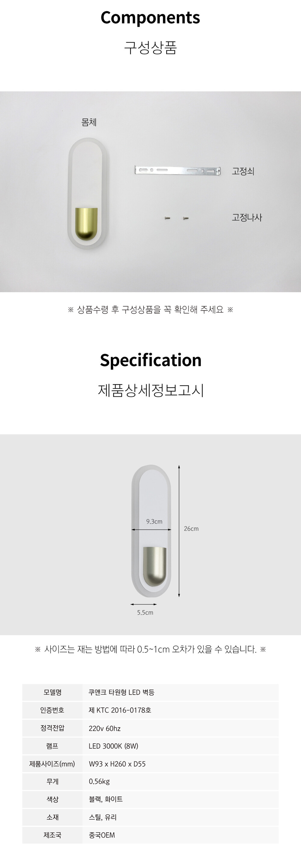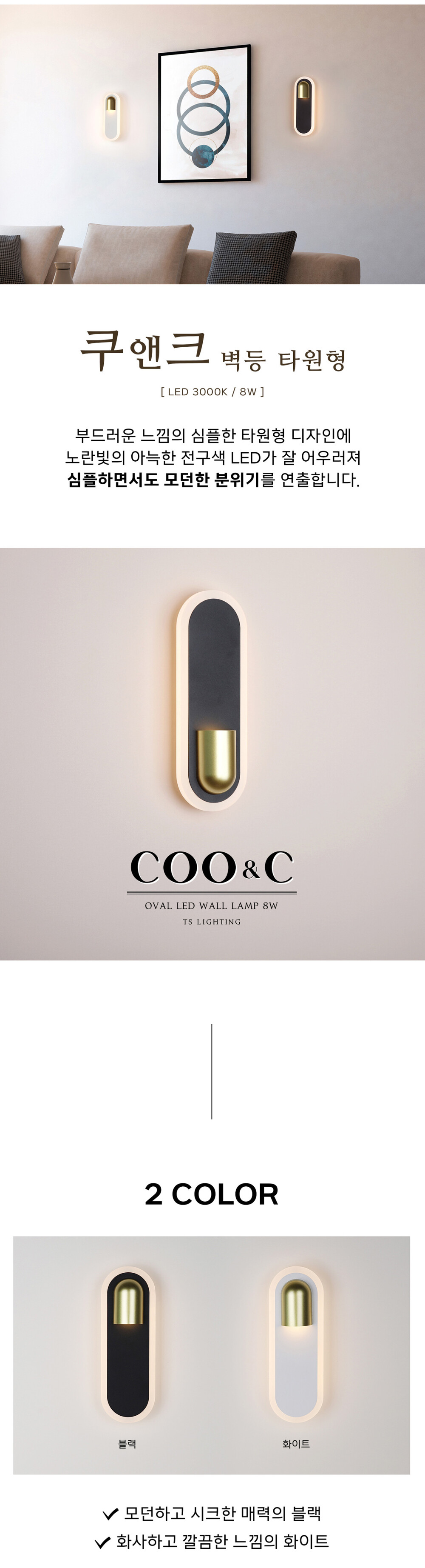 LED 쿠앤크 타원형 벽등 8W (2color)